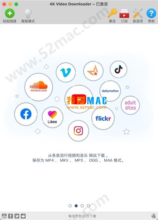 4K Video Downloader(4k视频下载器) for Mac 是一款简单好用的视频下载工具,允许您方便的下载YouTube等视频网站的高清视频、音频与字幕。下载非常简单直接:只需要从浏览器复制视频链接然后点击“粘贴URL链接”就可以了!