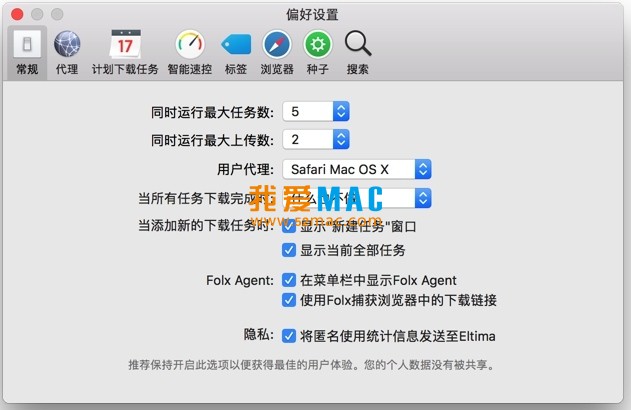 Folx也可作为专业版。它带来这样的便捷功能在多达10个线程从而加快了下载过程拆分下载;根据您的方便调度下载任务;智能速度调节选项(下载速度,当您需要使用Internet流量运行其他应用程序进行自动调节),iTunes的整合,并直接从Folx在Web上搜索种子。