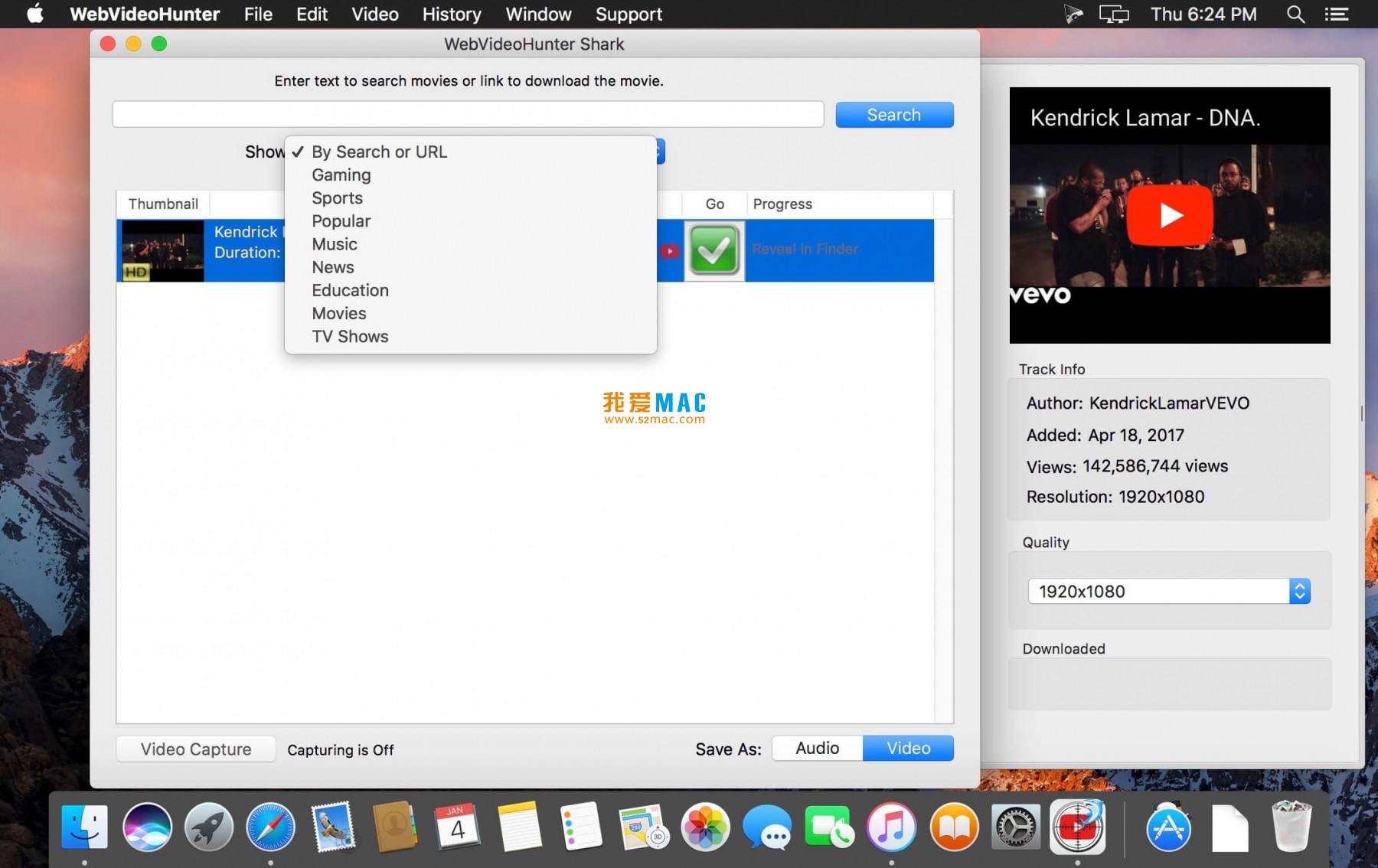 WebVideoHunter让您可以快速的从YouTube,Vimeo,DailyMotion,VEVO和其他位置查找和下载视频。WebVideoHunter下载视频的速度比实时播放快15倍,并支持同时下载。