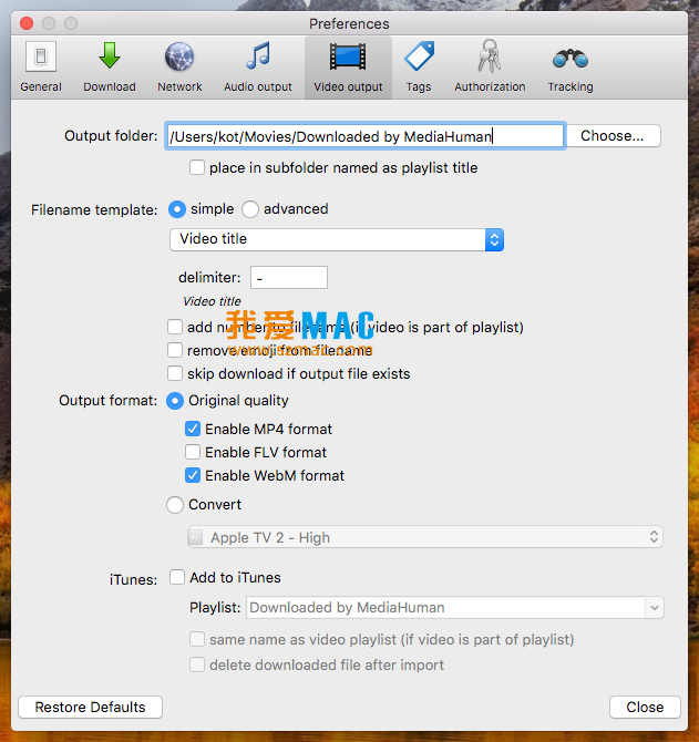您可以将程序配置为自动将下载的电影添加到iTunes资料库。您还可以选择一个播放列表,在该列表中应添加下载的视频。