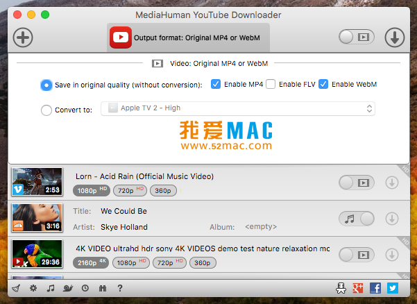 该程序支持所有可用的分辨率,即720p,1080p,4K或8K。这个选择由你。与在线视频下载器不同,该应用程序可以下载音频的所有资源。
