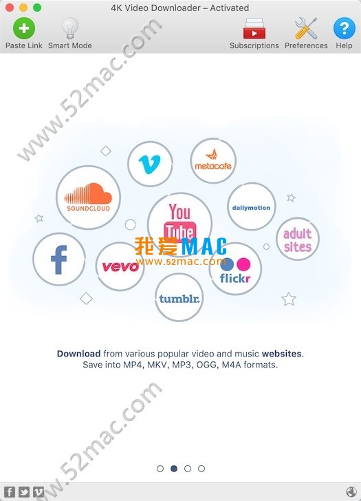 4K Video Downloader(4k视频下载器) for Mac 是一款简单好用的视频下载工具,允许您方便的下载YouTube等视频网站的高清视频、音频与字幕。下载非常简单直接:只需要从浏览器复制视频链接然后点击“粘贴URL链接”就可以了!