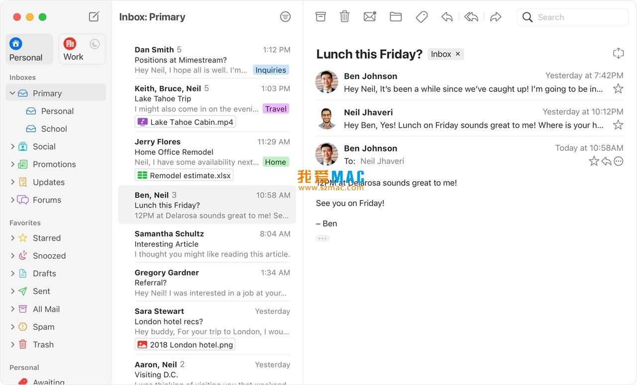 全面支持 Gmail 标签:包括颜色编码和可见性设置,方便快速识别邮件类别。