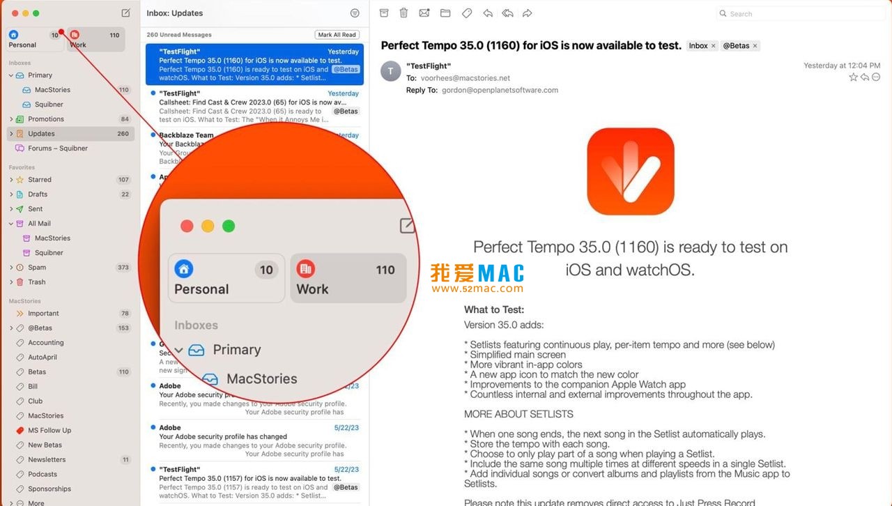 账户个性化:为每个账户分配独特颜色,便于识别关联邮件和标签;可自定义工作账户的通知时间(如 “工作时间” 设置),平衡工作与生活。