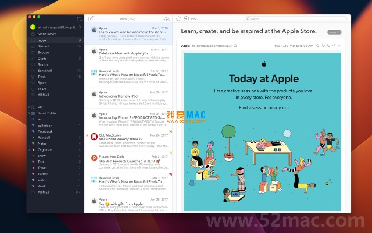 此外,Airmail 的主窗口让您可以快速查看任何收到的电子邮件,并且可以很容易地在您的帐户之间轻松切换,以便立即回复新邮件。