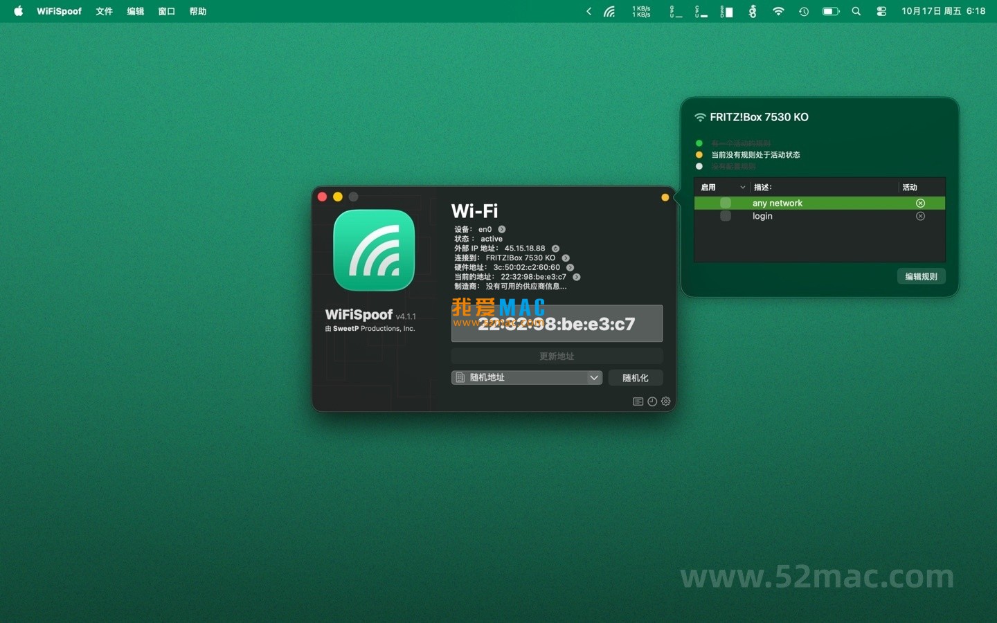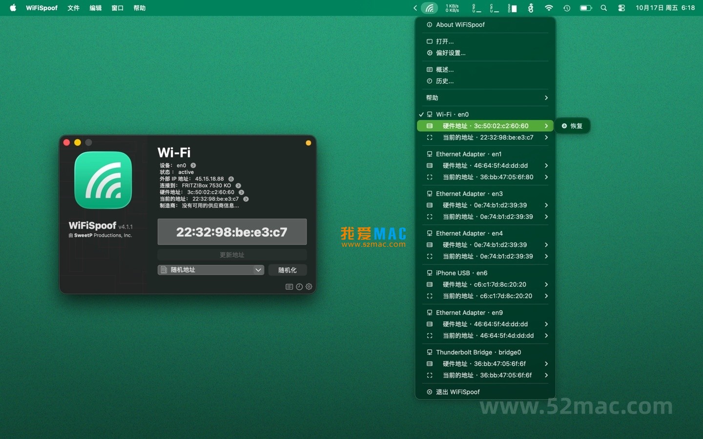 WiFiSpoof for Mac 是终极的系统网络工具,可快速概述Mac网络设备的当前状态。