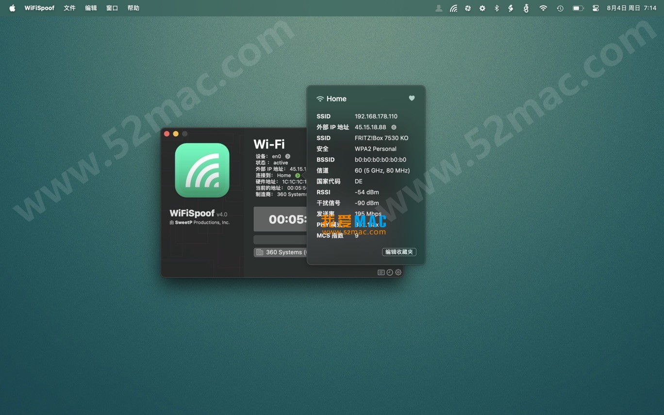 WiFiSpoof for Mac 是终极的系统网络工具,可快速概述Mac网络设备的当前状态。