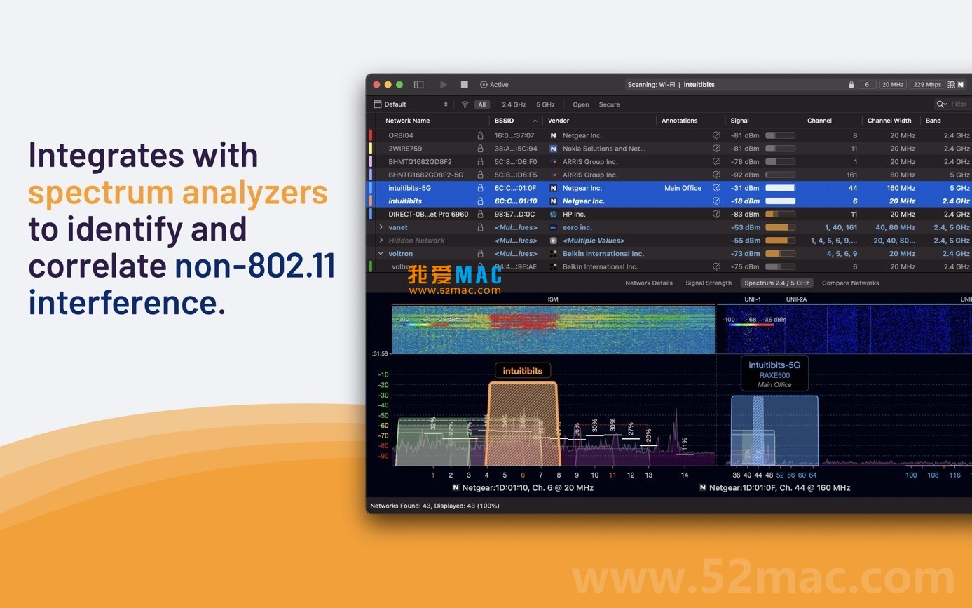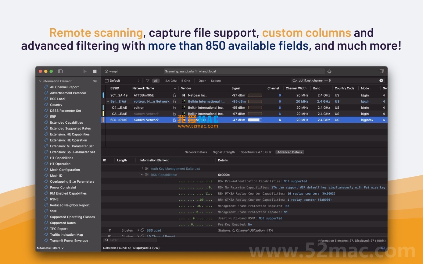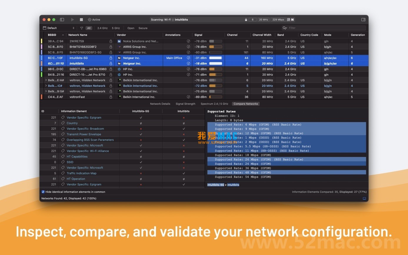 WiFi Explorer Pro for Mac 是一款专业的WiFi网络扫描和分析工具。它可以帮助用户扫描附近的WiFi网络,并提供各种有用的信息,例如网络名称、信号强度、频道、加密方式等。