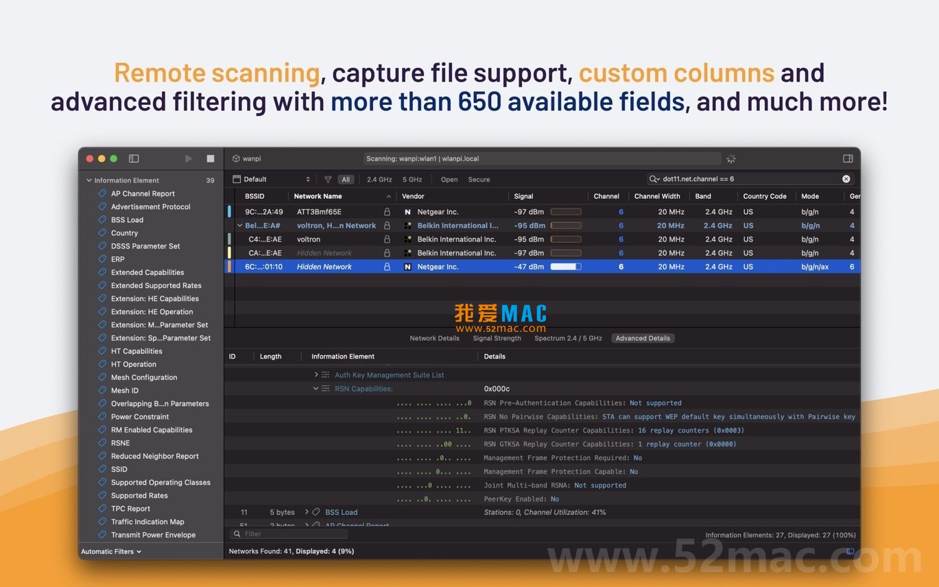 – 获得详细的网络能力和信息元素的完整描述,以便进行高级故障排除