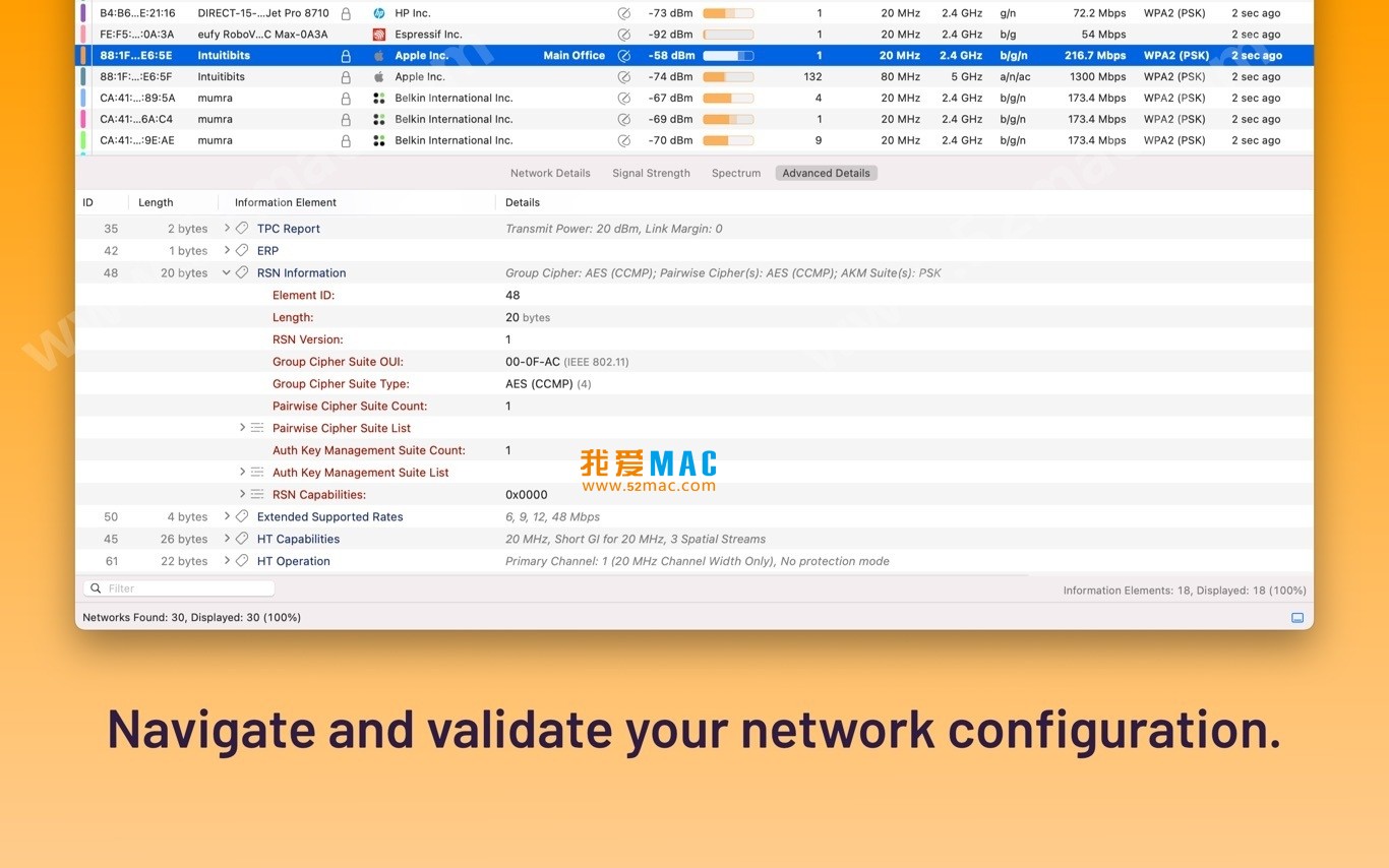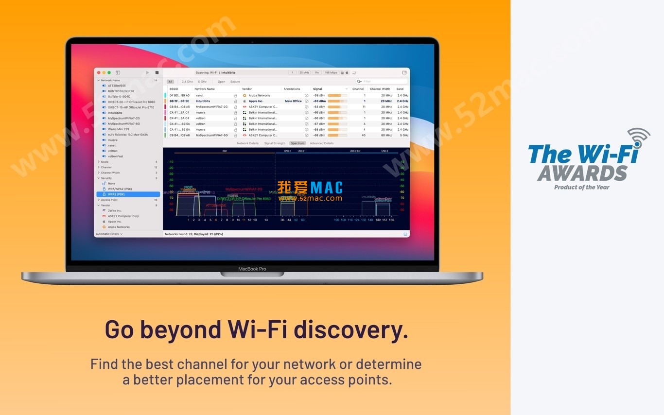 WiFi Explorer Pro for Mac 是一款领先的WLAN专业人员Wi-Fi扫描仪,旨在协助WLAN和IT专业人员进行无线网络的设计,验证和故障排除。