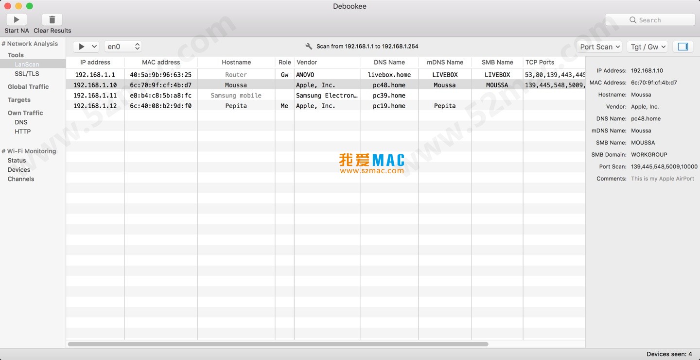 Debookee for Mac 是一款易于使用的监控工具,可让您快速扫描网络,实时拦截和分析每个设备的流量。无论您是想查看网络用户访问的网站,确保您的Wi-Fi未被其他人使用,或确认您的网页浏览会话确实是私密的,Debookee可以派上用场。