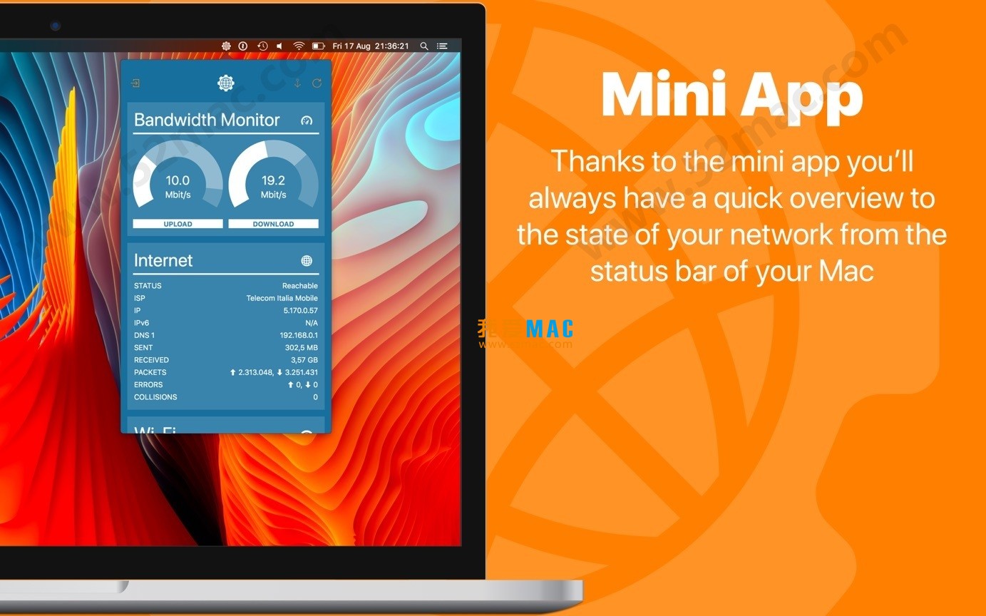-Mac的通知中心的许多新的可自定义小部件:使用全景小部件检查网络状态,以快速获取有关WiFi连接或网络适配器的详细信息