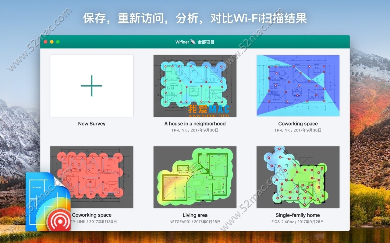 Wifiner for Mac 让您仅需几次点击即可对您的Wi-Fi网络连接进行分析和故障排除。扫描您的Wi-Fi网络,获取包含交互式彩色编码热图的详细信息,同时还有可能修复信号盲区。