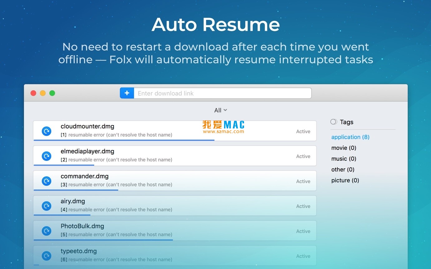 Folx Pro 是一款适用于 macOS 系统的专业下载工具,Folx 可以方便地进行下载管理,灵活设置,并且完全兼容最新的 macOS 系统。 Folx 凭借其便捷的功能,让下载成为一件很简单的事情。