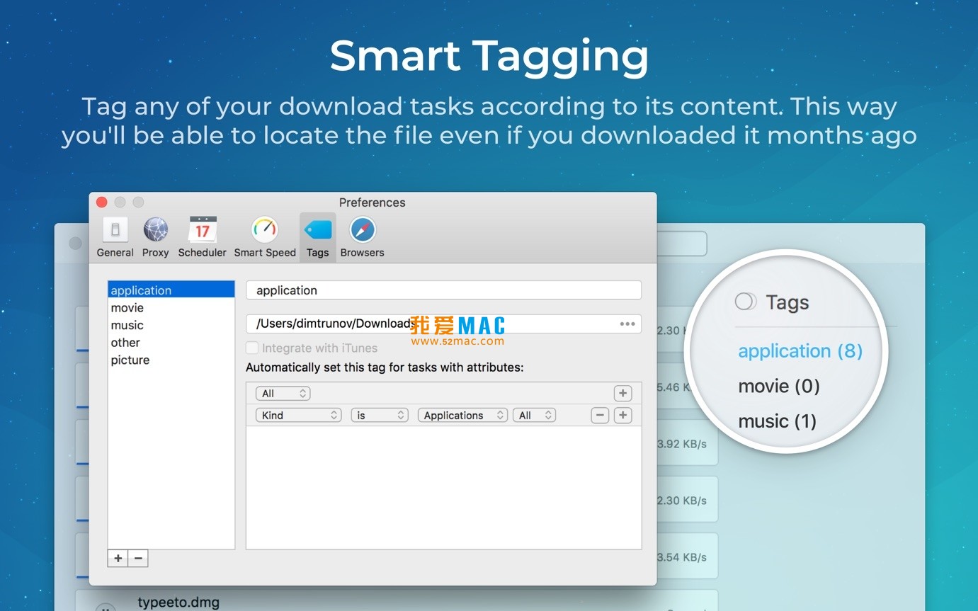 iTunes 集成:下载的音乐和视频会自动添加到 iTunes 的播放列表中,并以关联的下载标签命名,方便用户管理和播放音乐及视频文件。