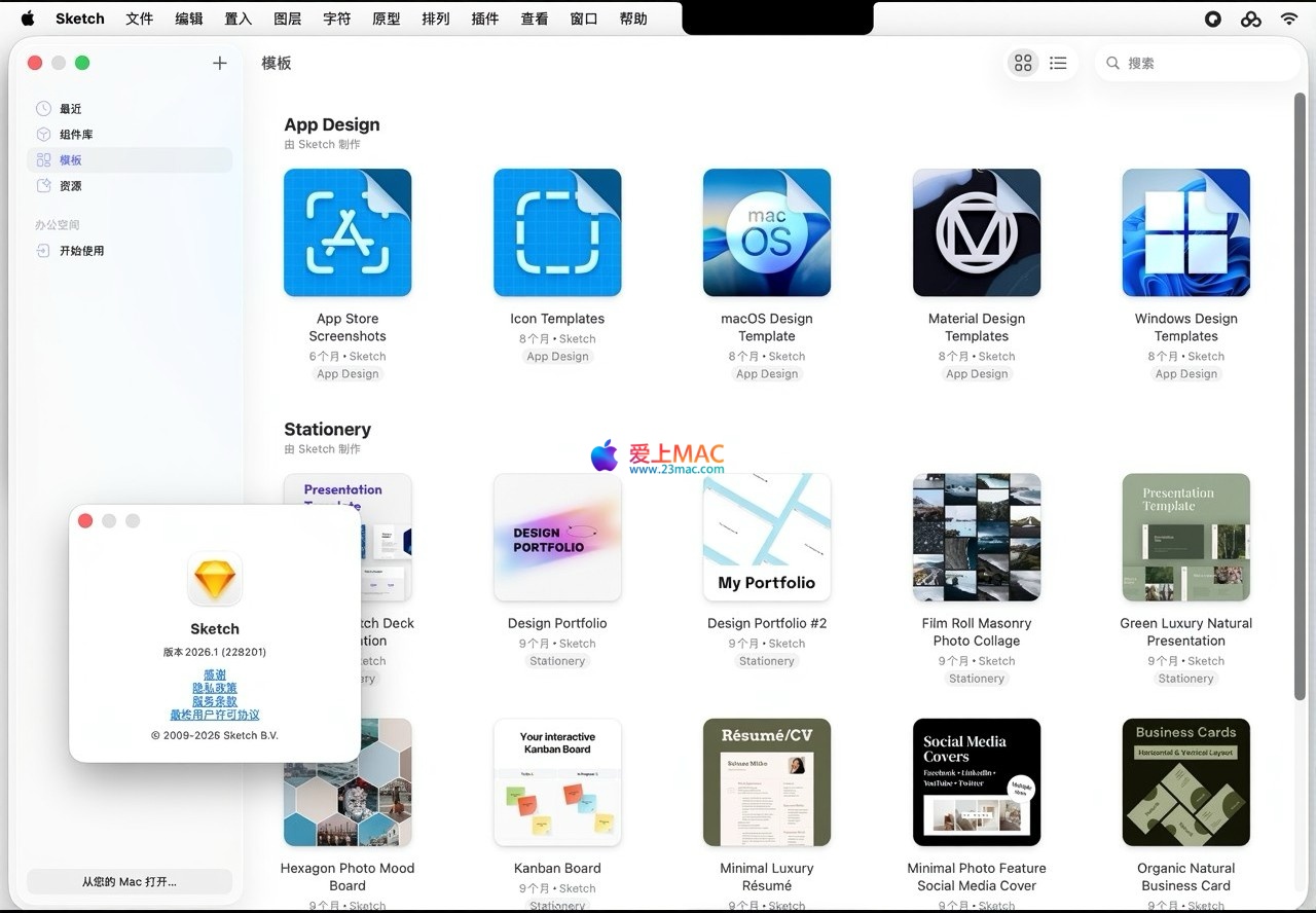 以下为 Sketch for Mac v2026.1 软件界面示例:
