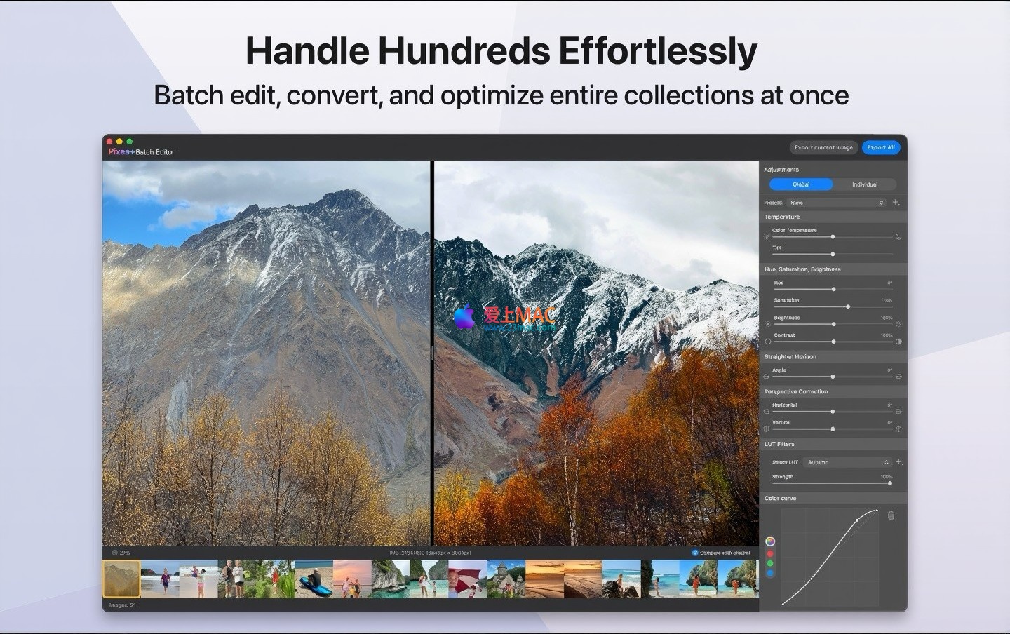 以下是 Pixea for Mac v8.1 的部分操作界面截图,展示了其简洁的布局与强大的功能面板。