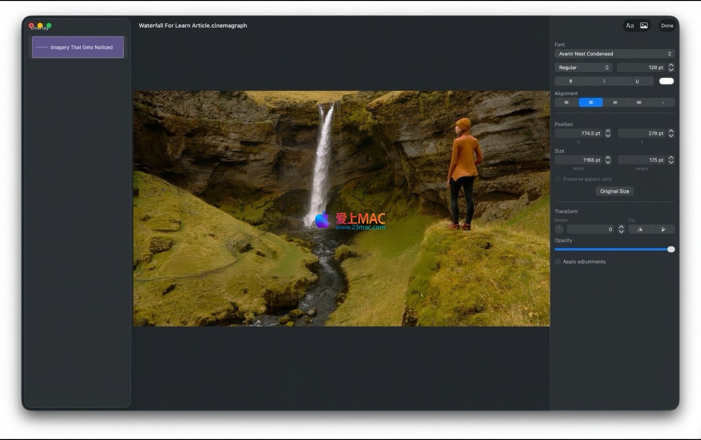 以下是 Cinemagraph Pro for Mac v2026.13.1 中文版的操作界面截图: