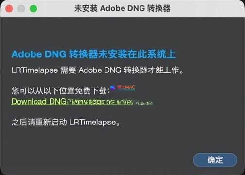 LRTimelapse 依赖于 Adobe DNG Converter 提供的 ACR 解码内核来读取 RAW 文件。首次启动时,软件可能会提示您下载并安装 Adobe DNG Converter。请务必根据提示完成安装,以确保软件对 RAW 格式文件的完整支持。
