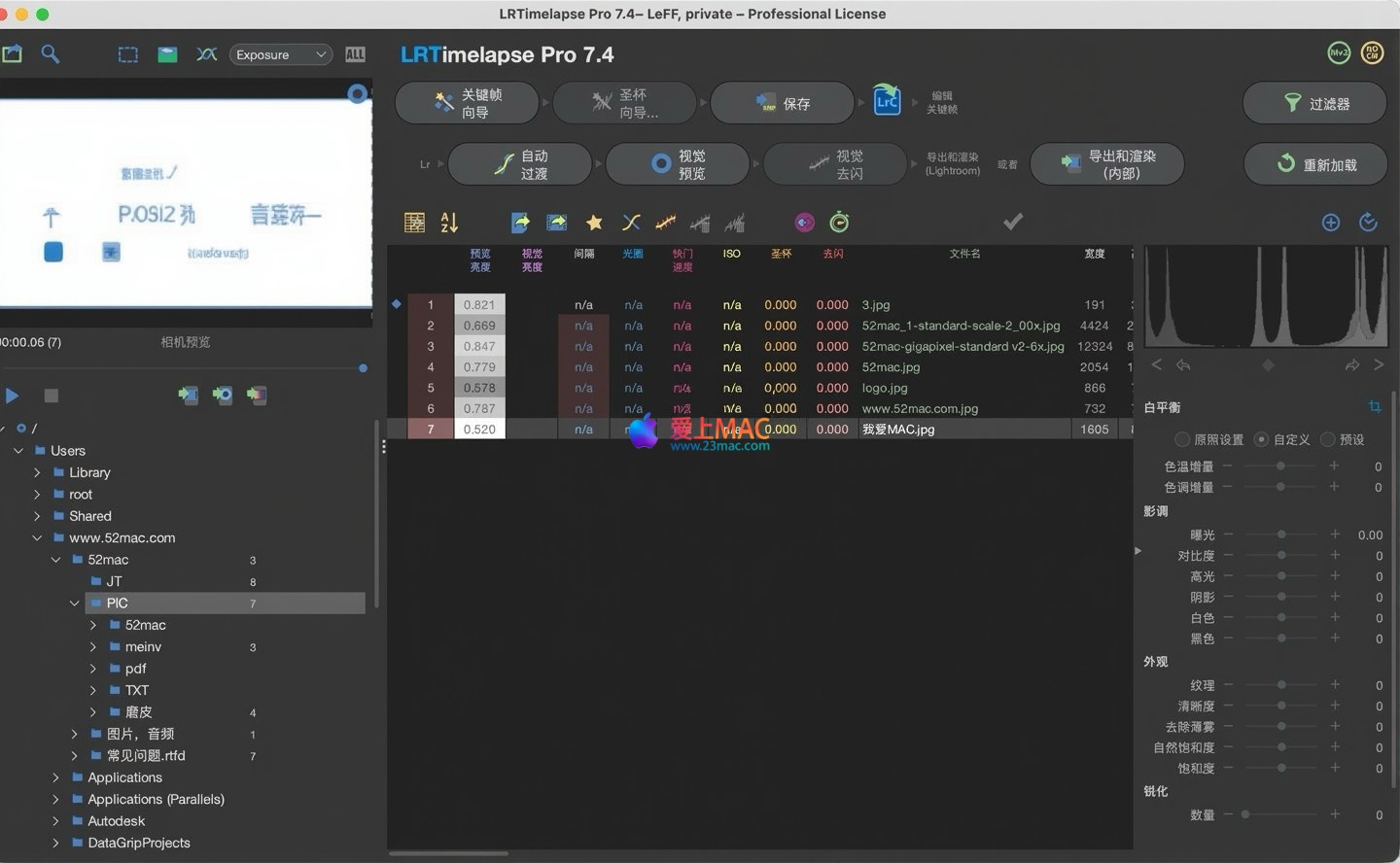 以下是 LRTimelapse Pro 7.4.0 的主要操作界面截图: