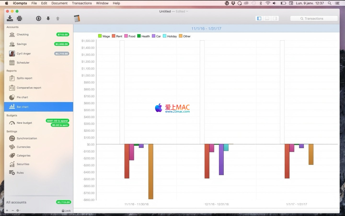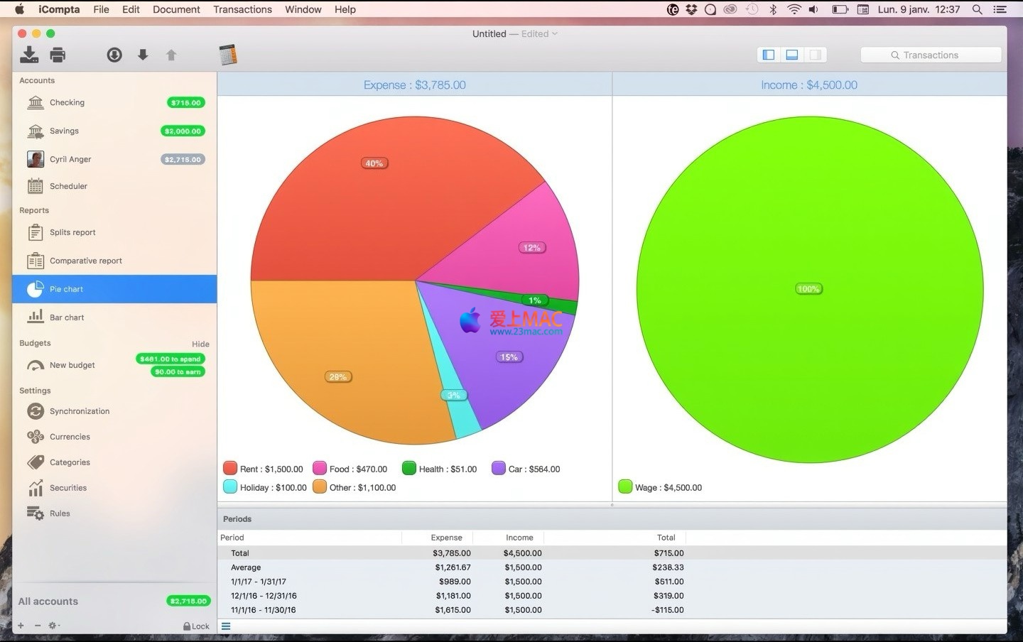 以下是 iCompta for Mac v6.2.3 的软件界面截图,展示了其清晰直观的操作界面与数据可视化效果: