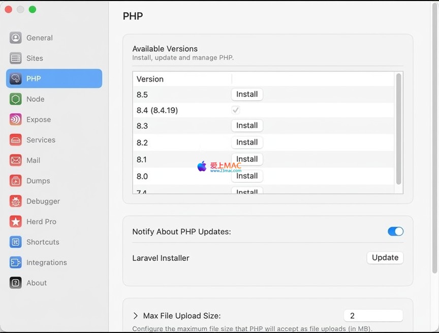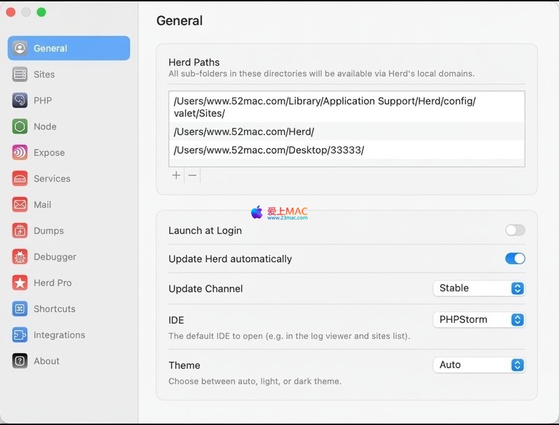 herd init 命令生成项目专属配置文件。herd 命令行体系。以下是 Herd for Mac 的软件界面截图: