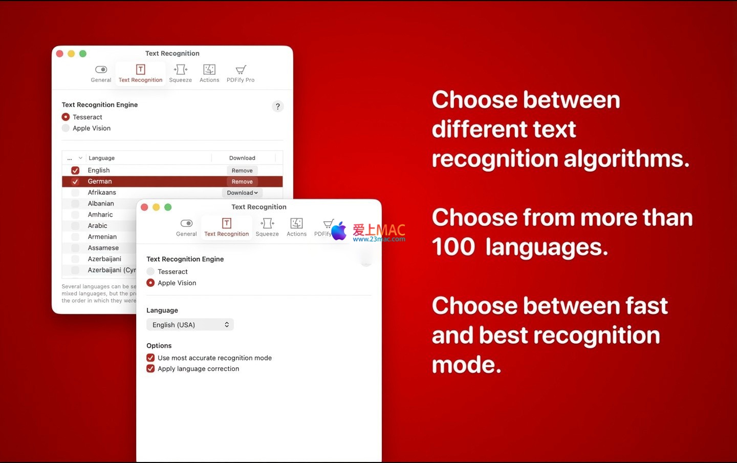 PDFify 是一款高效、安全的专业工具,致力于将各类文档与图像转换为可搜索、可归档的PDF文件。它支持超过100种语言的OCR(光学字符识别),集成了PDF/A长期归档、智能压缩及macOS Finder快速操作等功能,为用户提供流畅、直观的文档数字化体验。