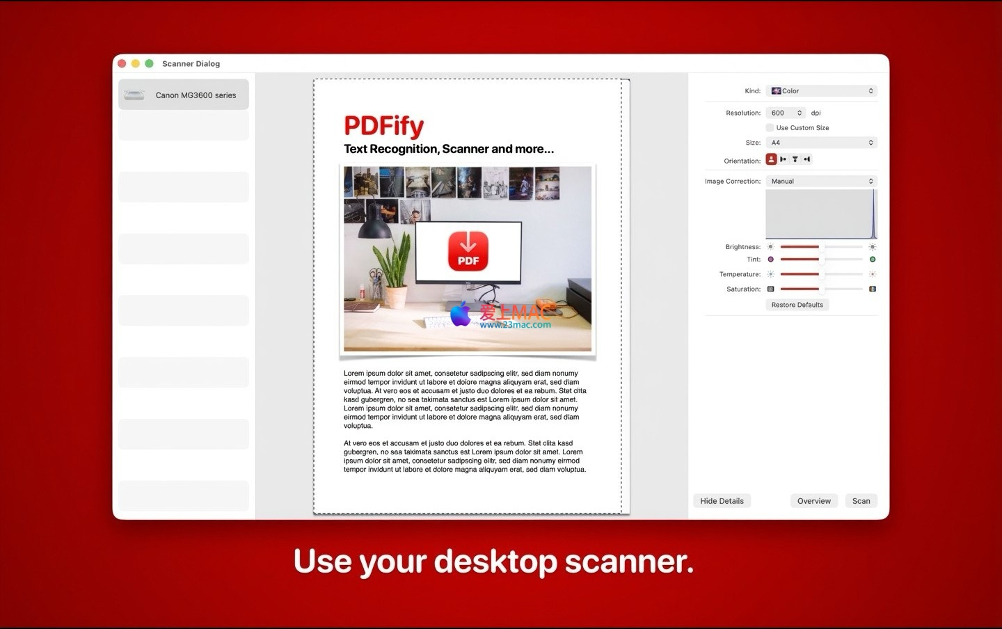 核心功能概述: 无论您的原始材料是扫描件、图片、电子邮件还是网页,PDFify都能通过先进的OCR技术(Apple Vision或Tesseract引擎)将其转换为内容可检索的PDF,让信息查找变得瞬间完成。