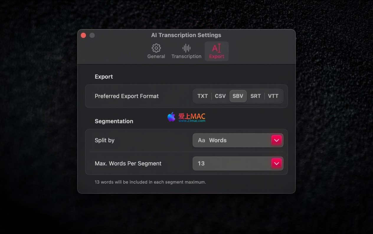 以下是 AI Transcription for Mac v2.15 的应用程序界面截图: