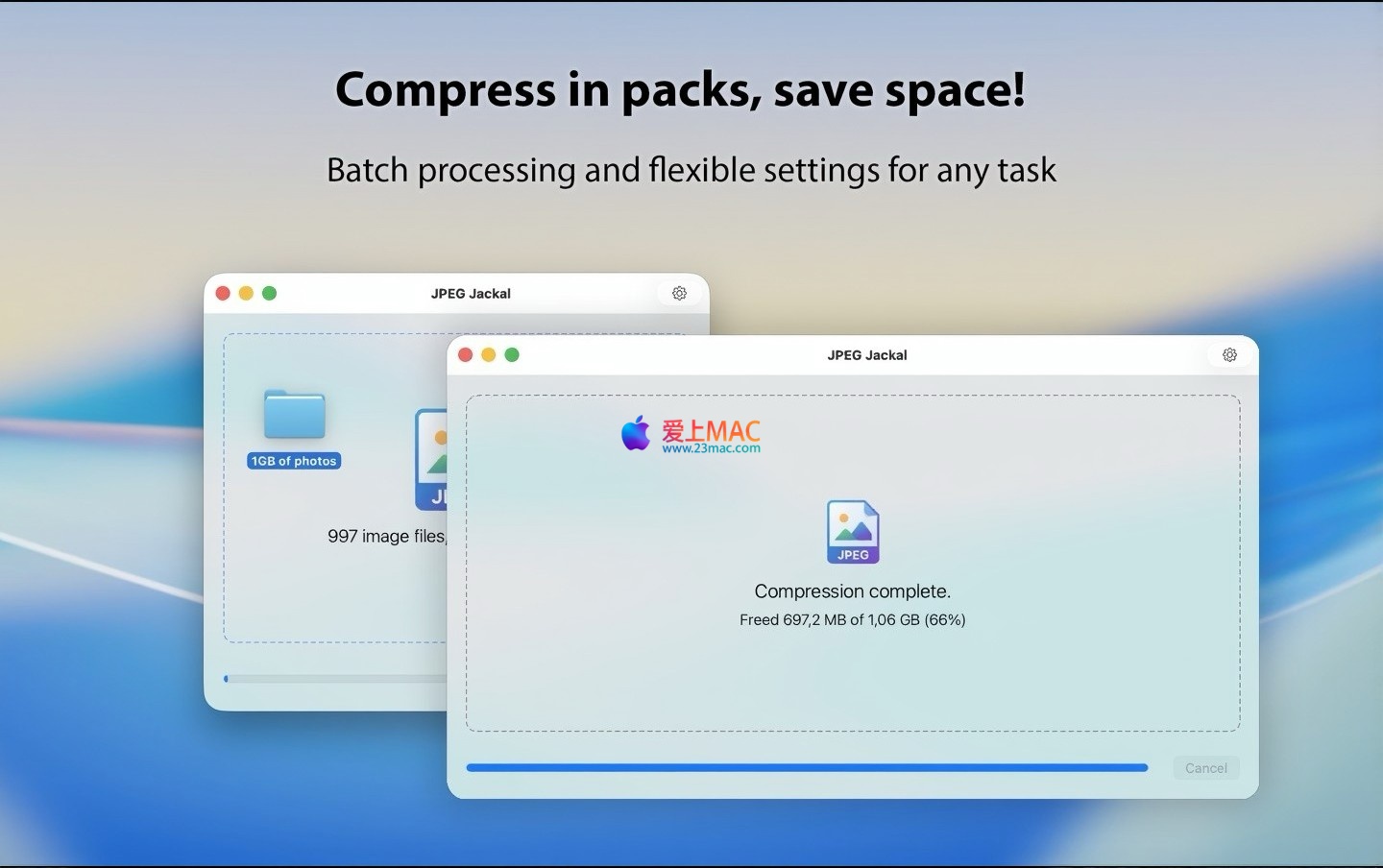 高分辨率照片通常占用大量磁盘空间。JPEG Jackal 采用先进的智能压缩算法,在确保画质清晰的前提下,大幅减少文件体积,有效解决存储与传输效率问题。