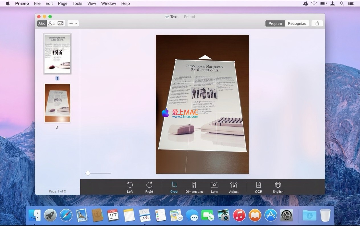 Prizmo Pro 4 for Mac 是一款功能强大的专业扫描与光学字符识别(OCR)软件。它支持多达28种语言的OCR识别,集成了先进的文档编辑、图像增强及文本转语音功能,为用户提供从文档捕获到信息再利用的一站式工作流。
