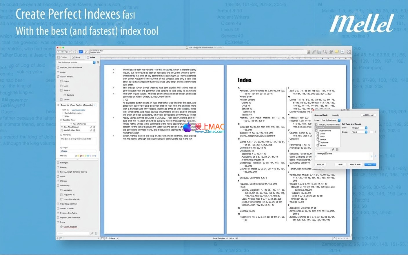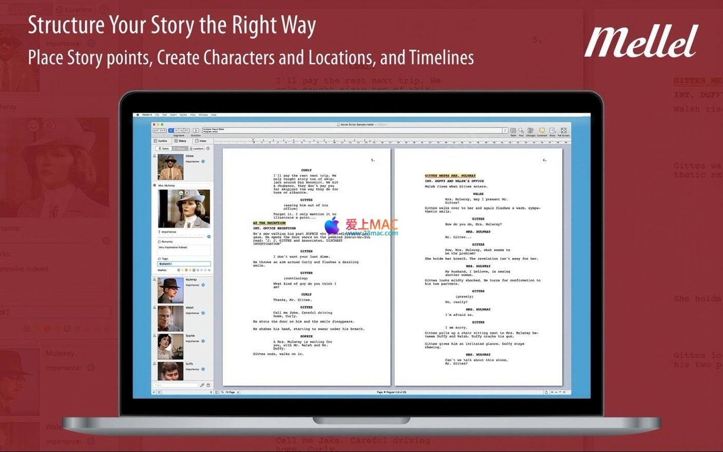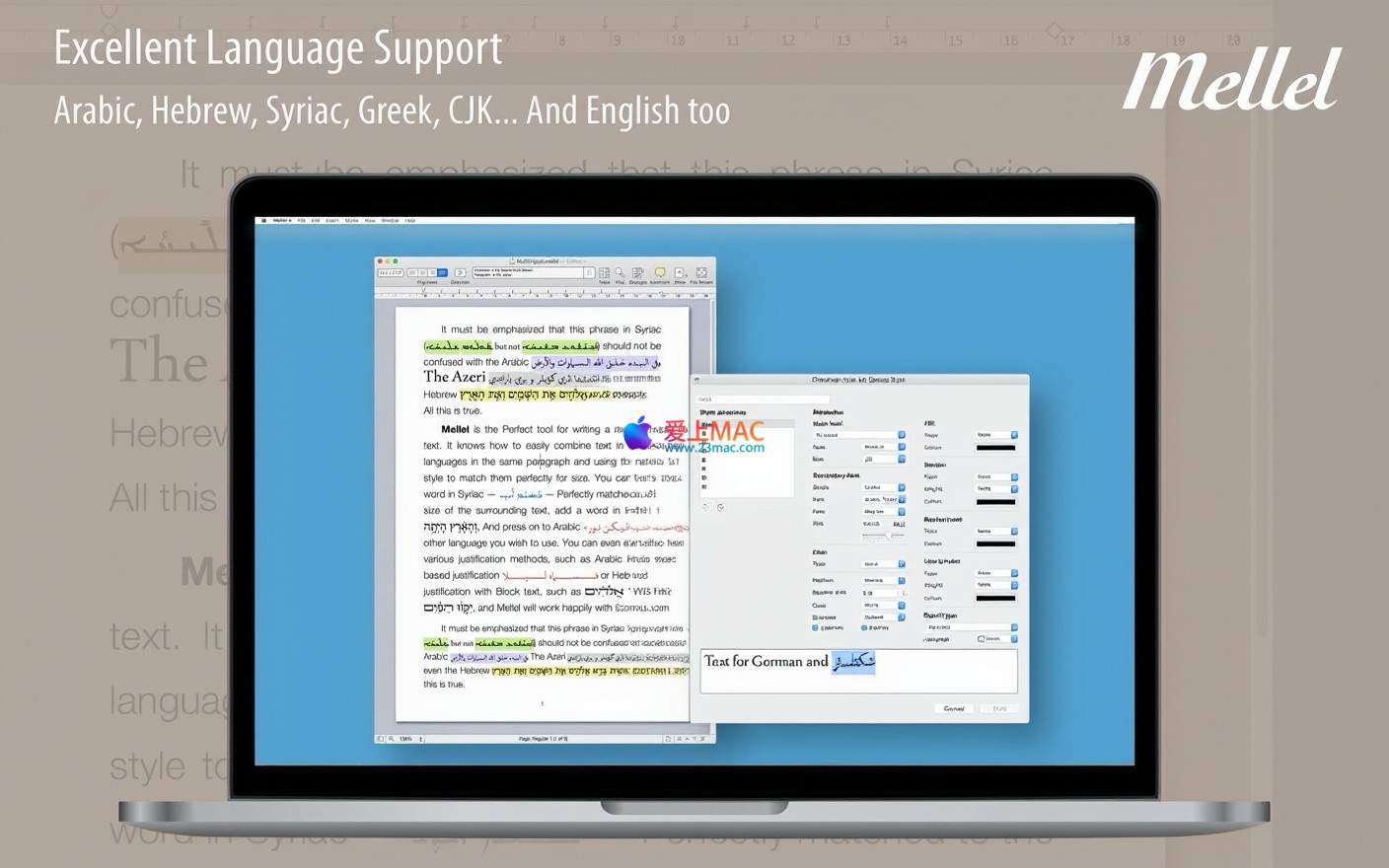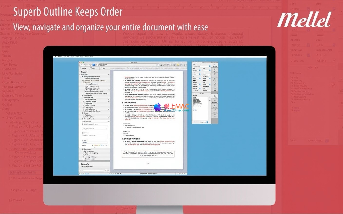 以下截图展示了 Mellel 5 for Mac v5.0.3 的用户界面与功能概览。