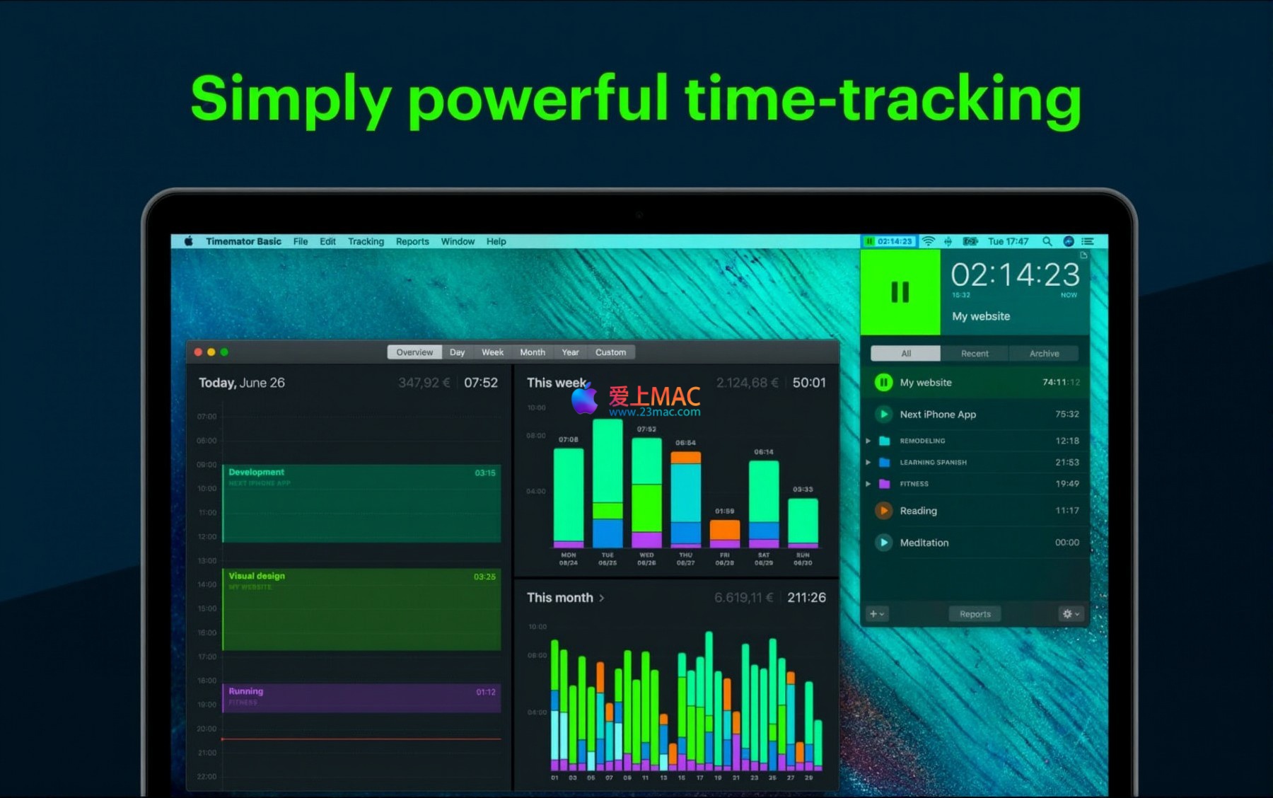 Timemator for Mac 是一款功能强大、界面美观且操作简便的时间追踪工具,专为需要精确记录工作时间与收入的专业人士设计。它通过直观的自动化追踪与灵活的管理功能,帮助用户高效提升生产力。