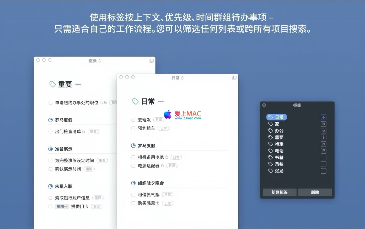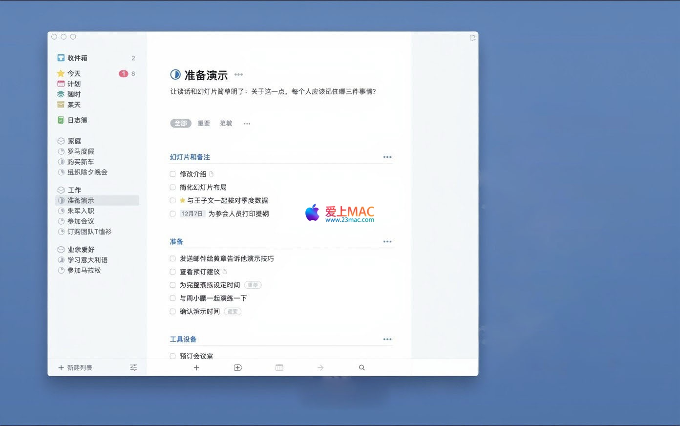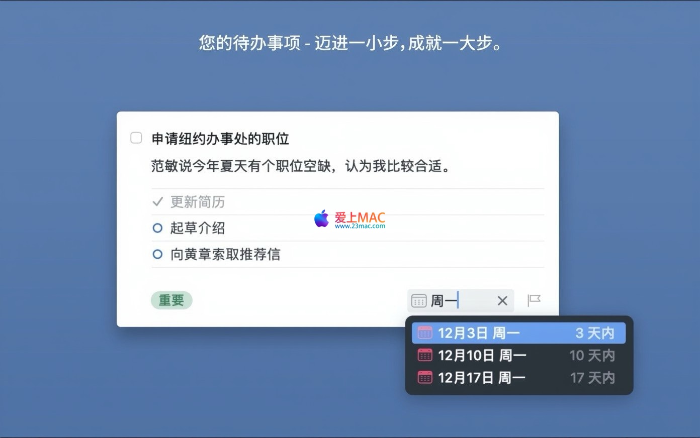以灵活的“待办事项”作为管理基础。每个待办事项均可添加备注、标签、安排日程,或进一步拆分为子任务,是构建任何成就的基石。