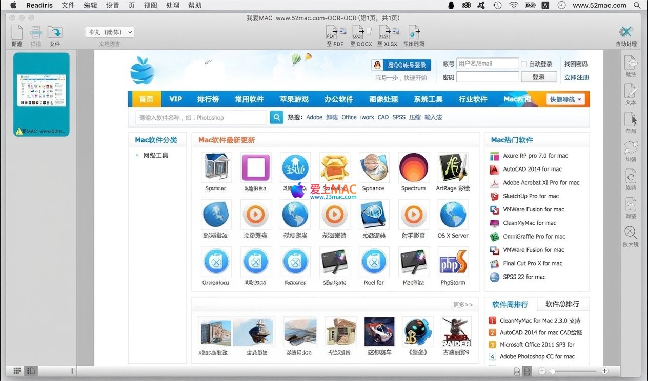 以下为 Readiris Pro 17 for Mac 的操作界面截图: