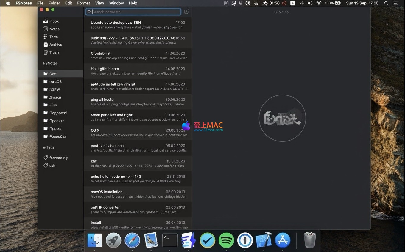 以下是 FSNotes for Mac v4.9.13 的实际操作界面: