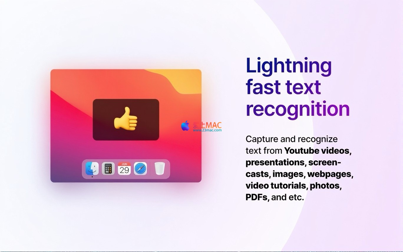TextSniper 是一款专为 macOS 设计的桌面级光学字符识别(OCR)应用程序,能够快速提取并识别屏幕上任何不可搜索或不可编辑的文本内容。作为其增强功能之一,它还支持将识别出的文本转换为语音输出。该工具以操作简便、响应迅速为特点,是传统复杂OCR软件的高效替代品。