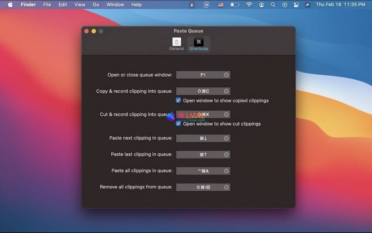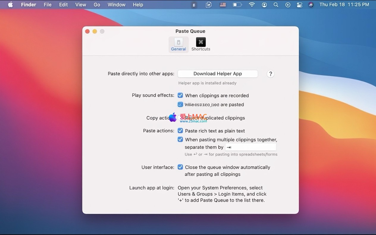 以下为 Paste Queue for Mac v1.4 的应用程序界面截图,展示了其队列管理、设置选项等主要界面。