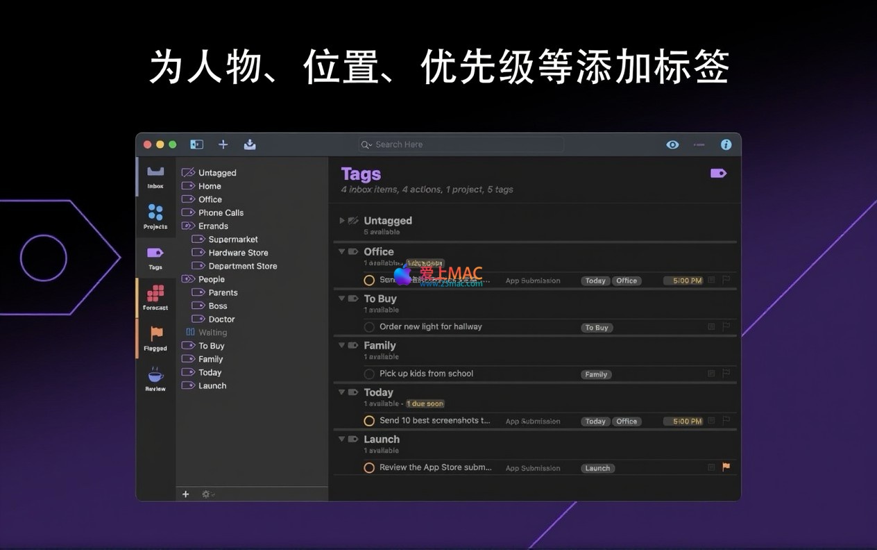 OmniFocus Pro for Mac 是一款功能强大的专业任务管理软件,专为高效能人士及繁忙的专业人员设计。它通过一系列精密的工具,帮助用户梳理繁杂事务,确保在正确的时间专注于正确的任务,从而提升工作效率与个人生产力。
