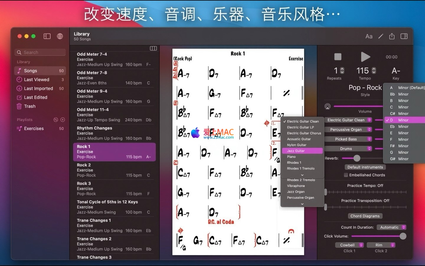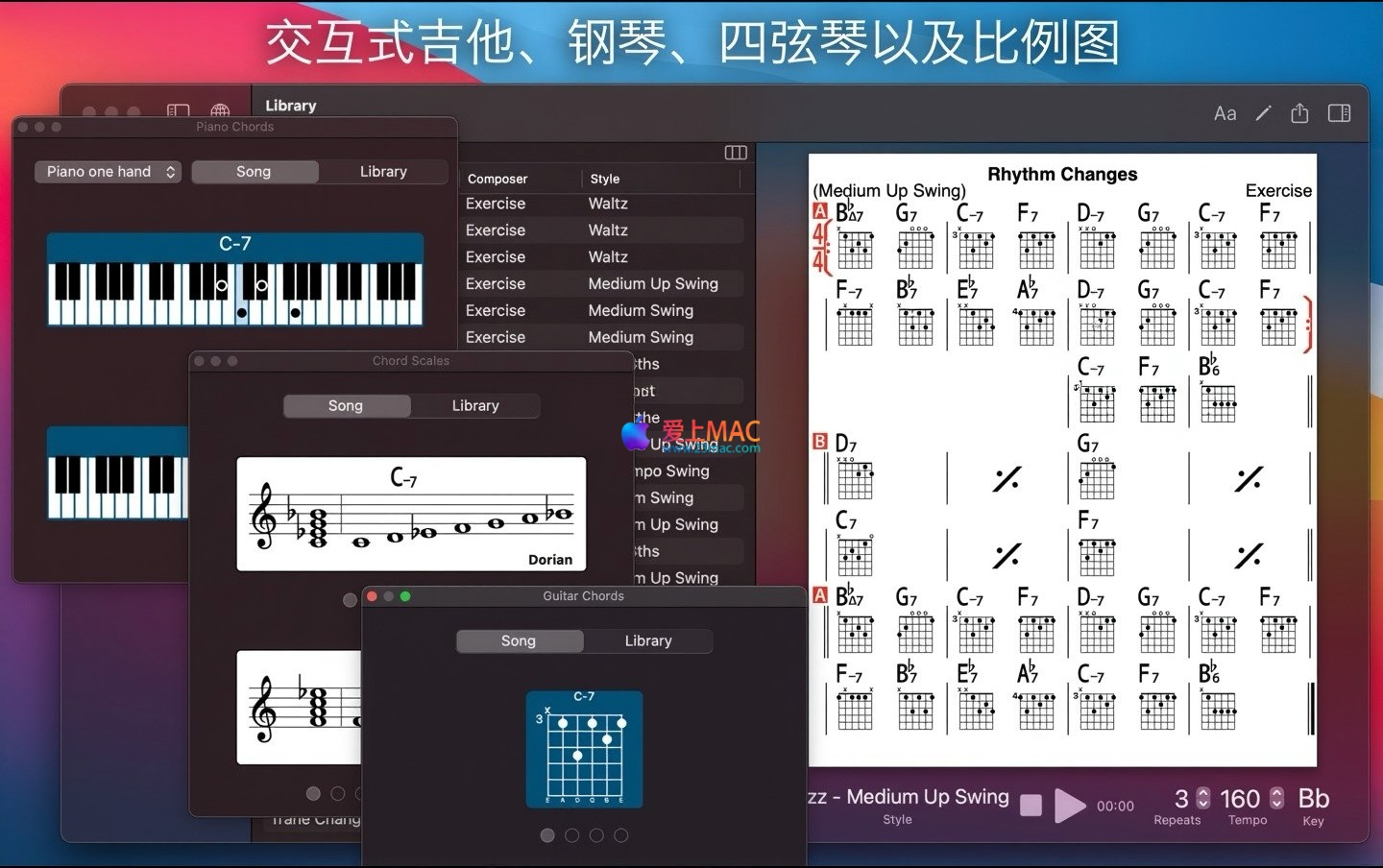 iReal Pro for Mac 是一款功能强大的音乐练习工具,旨在帮助各级别音乐家精进技艺。它通过模拟一支音色逼真的虚拟乐队,为用户提供实时伴奏,使练习过程更加生动高效。此外,用户还可创建并管理个人喜爱的歌曲和弦图表库,作为便捷的参考资料。