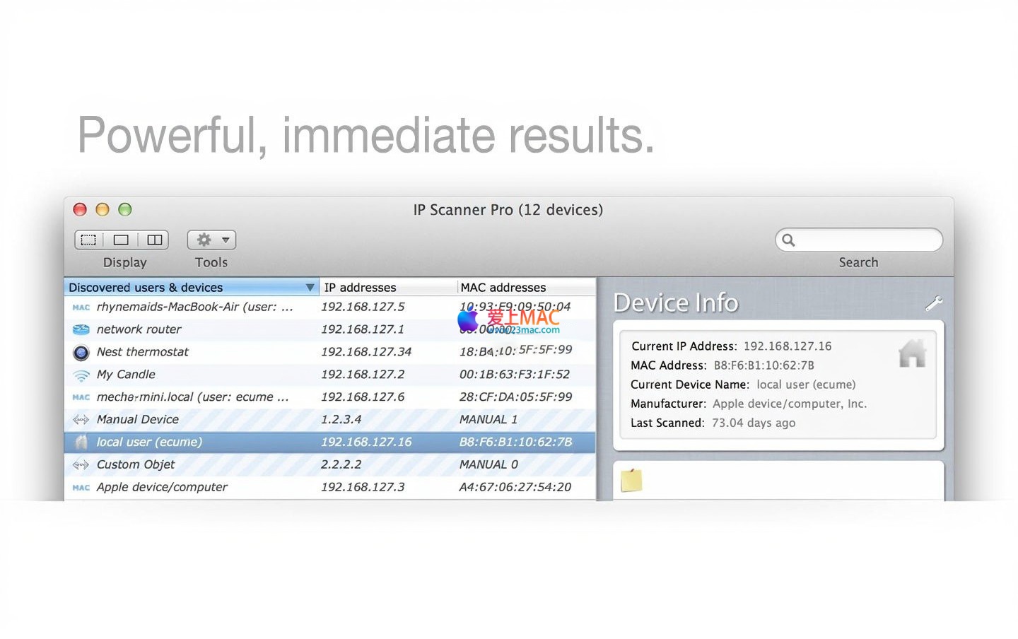 以下是 IP Scanner Pro for Mac 的操作界面截图,展示了其清晰直观的布局与丰富的信息展示: