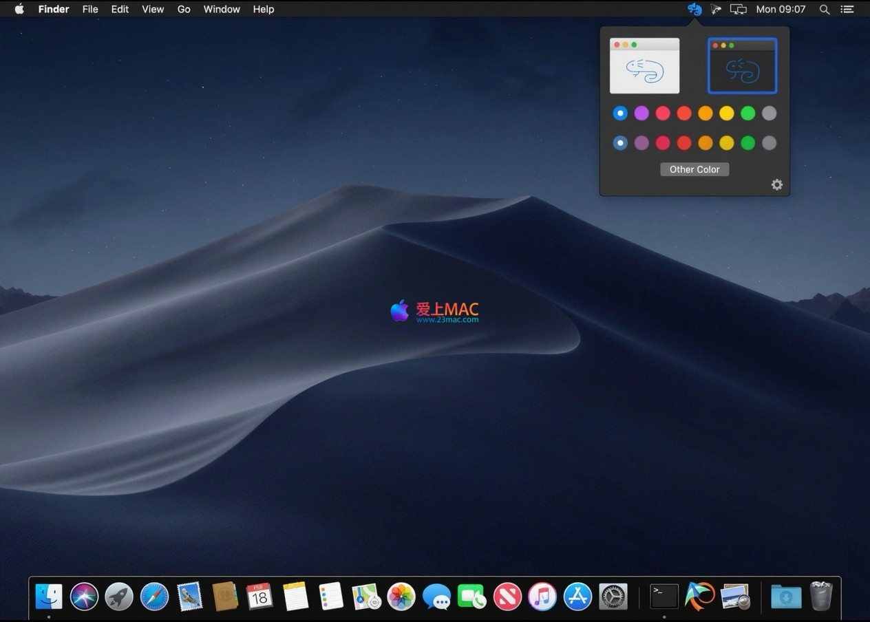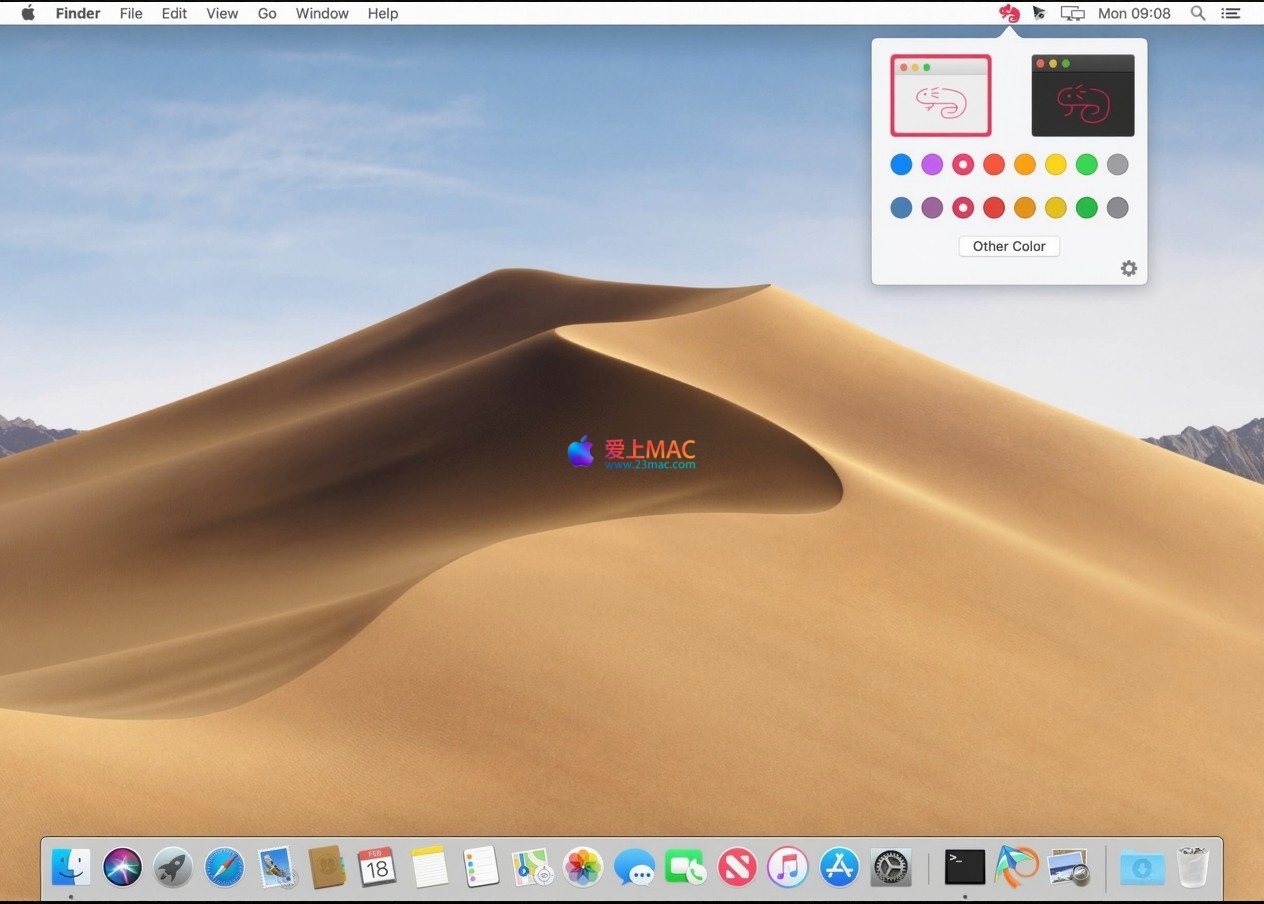 Chameleon for Mac 是一款轻量级的菜单栏应用程序,它将 macOS 的界面外观设置集成到便捷的菜单栏入口中。通过该工具,用户可以快速自定义系统强调色与高亮色,并能一键在深色模式与浅色模式之间切换,极大地提升了操作效率。