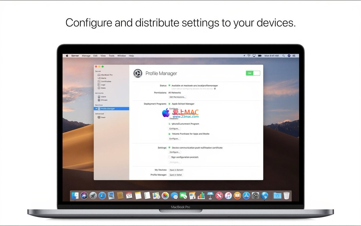 提供完整的移动设备管理(MDM)能力,支持 iOS、macOS 和 tvOS 设备。