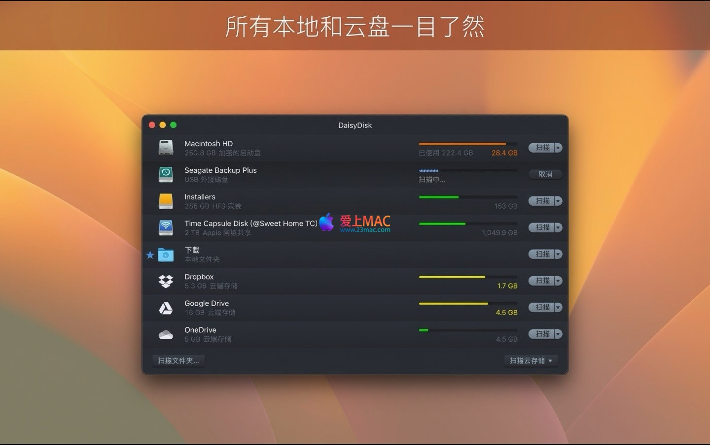 DaisyDisk 是一款专为 macOS 系统设计的专业级磁盘空间分析与清理工具。其核心优势在于采用了直观的“太阳图”(Sunburst Map)可视化界面,并结合极速扫描技术,能够帮助用户高效定位并清理占用大量存储空间的文件与冗余数据,从而优化磁盘使用效率。