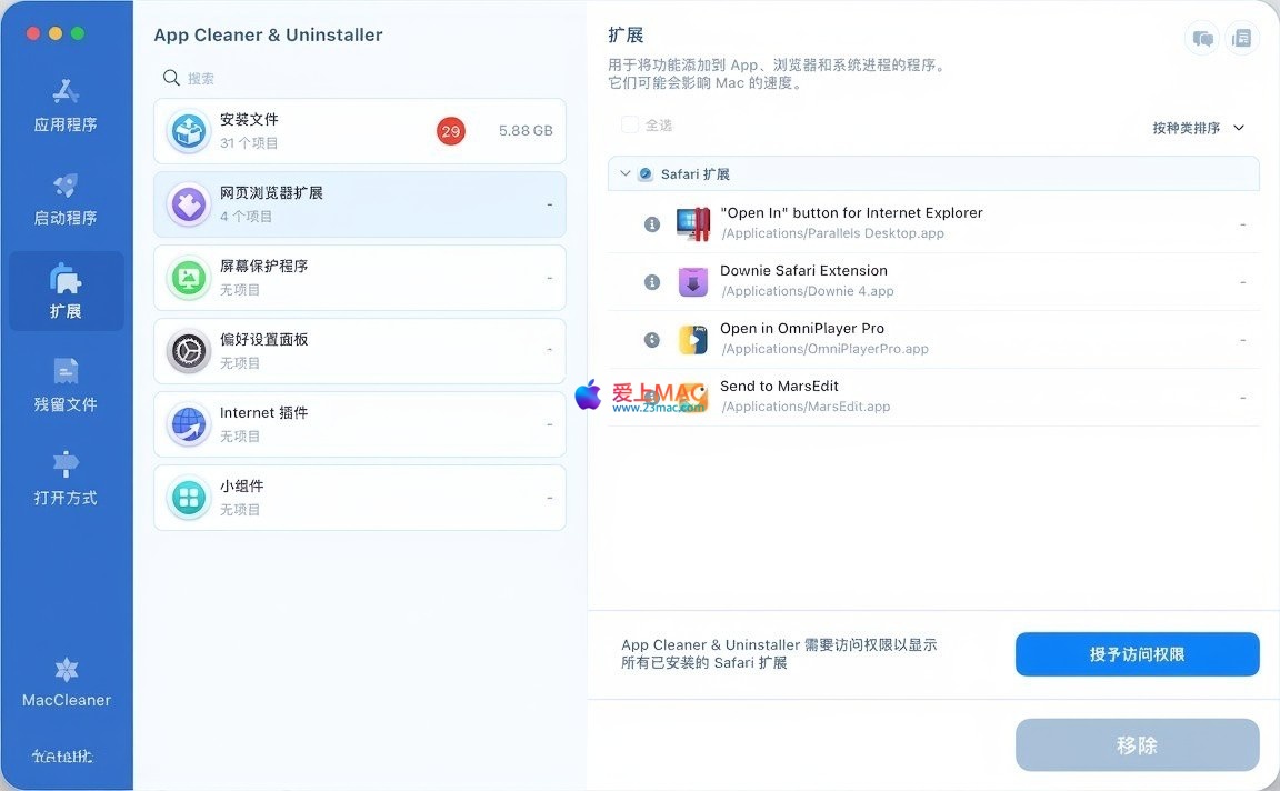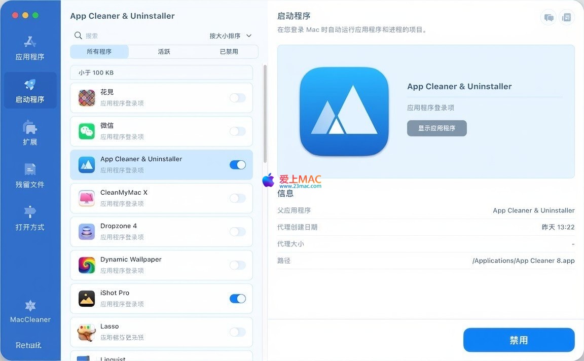 以下为 App Cleaner & Uninstaller 的主要功能界面展示: