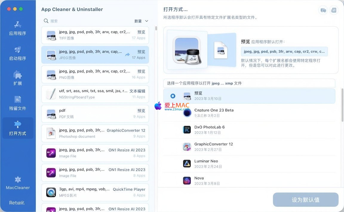 轻松更改特定文件类型的默认打开程序,在文件类型与应用程序之间建立或修改关联。