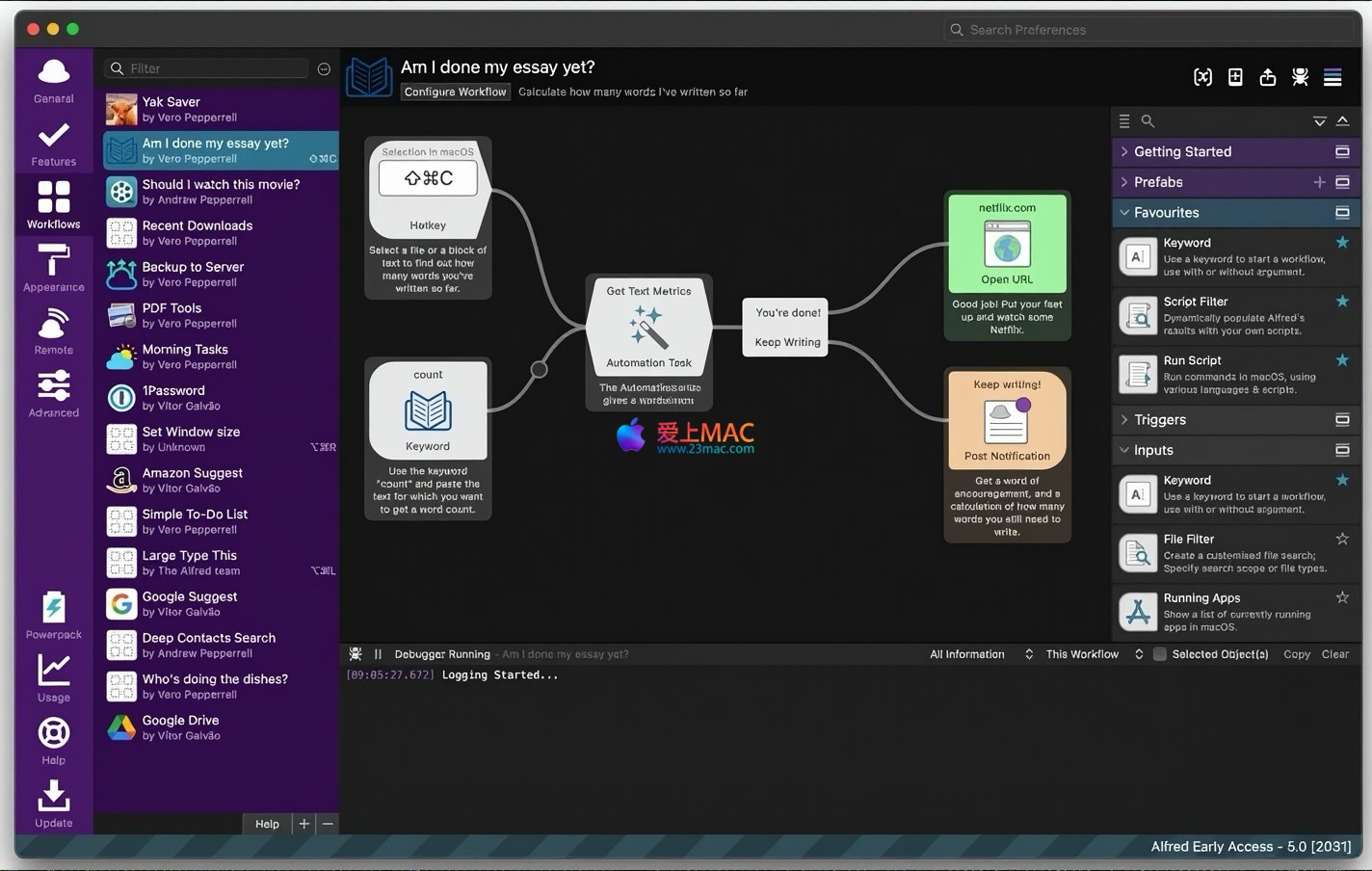 通过 Powerpack 高级功能,用户可利用强大的工作流将复杂任务自动化。无需编程知识,即可通过链接热键、关键词和操作创建个性化工作流。同时,可以轻松导入由活跃社区创建的数千种现成工作流。