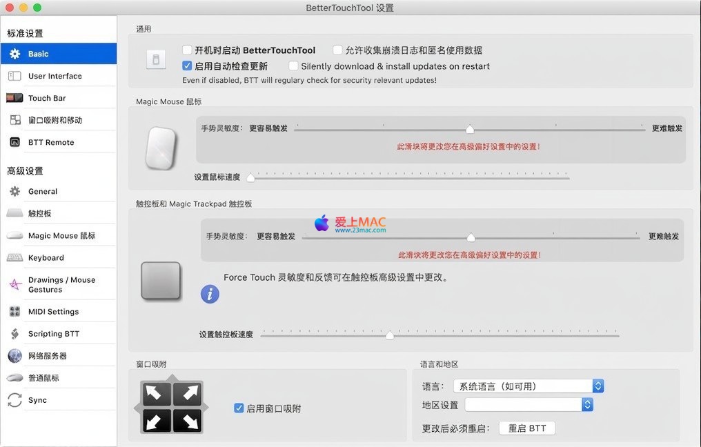 其设置面板提供“简单”与“高级”两种视图模式,便于不同需求的用户调整手势灵敏度等参数。启用的“窗口捕捉”功能,能在用户将窗口拖至屏幕边缘时自动调整其大小,提升多任务处理效率。