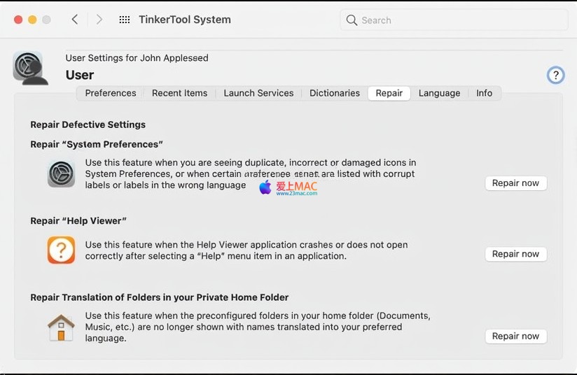 以下是 TinkerTool System for Mac v7.2 的部分操作界面截图: